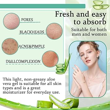 - Suitable for All Skin Types: Aloe vera gel is specially developed for post sun care and moisturizing of the skin, using gentle ingredients that make it easy to use for all skin types. It can be applied not only to the face but also to various parts of the body