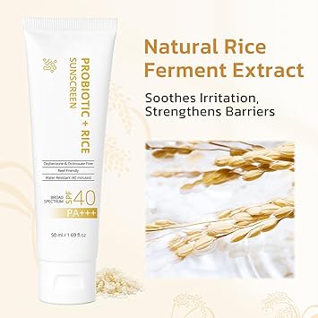 Gentle SPF 40 Daily Face Sunscreen, Broad Spectrum UVA/UVB Protection, Hydrating Facial & Body Sunscreen with Fermented Rice Water Prebiotics, Non-Greasy for All Skin Types