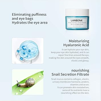 LANBENA Eye Cream for Wrinkles, Anti-Aging with Hyaluronic Acid, Reduce Fine Lines, Firm Skin, Puffy Eyes and Dark Circles Treatments