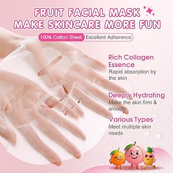 • 【Suitable for All Skin Types】Various facial masks are specifically designed for different skin problems,whether your skin is oily,dry or sensitive,our face masks skincare can easily solve the problem.Skin friendly cotton sheet,with fruit ingredients,mild and non irritating,and have a faint fruity fragrance