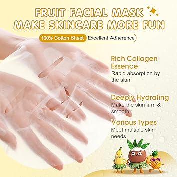 • 【Attractive Fruit Cartoon Design】This face mask set is designed with cute cartoon fruit as a whole,super cute fruit cartoon elements embellish the facial mask,the lifelike patterns and kawaii packaging are perfect for various spa party and festival,make everyone who owns it unable to put it down