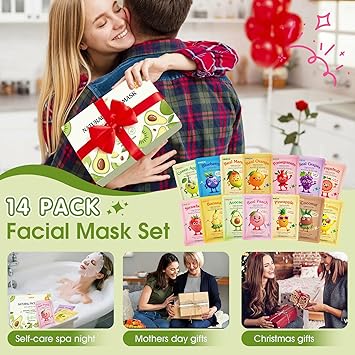 14 Pack Fruit Face Masks Skincare for Kids, Sheet Hydrating Facial Mask All Skin Types, Bulk Collagen Women Care, Birthday Party Spa Gifts Teens Girls