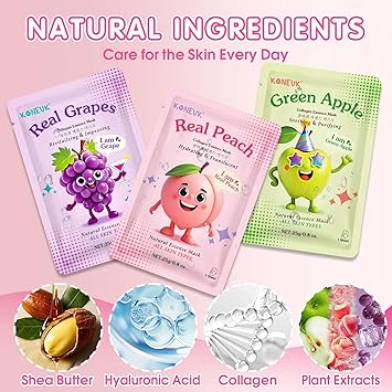 • 【Face Masks for Teens Girls】Fruit cartoon facial mask is so interesting!these are great spa gifts for kids,teens,women and girls.They are perfect mothers day gifts,teacher appreciation gifts,christmas gifts,nurses week gifts and birthday gifts.It can help improve the skin condition,making it softer,more moisturized and firmer.Bring girls a fun and exciting new skincare experience