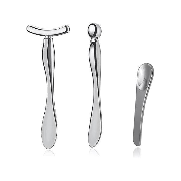 - Package Include: 3-piece eye cream applicator set, including a U-shaped beauty stick, a massage roller, and a beauty scoop, apply cream and massage.