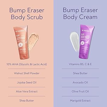 KP Bump Eraser Body Scrub & Keratosis Pilaris Lotion Bundle Set - Strawberry Legs Treatment for Women - Exfoliates Deeply Hydrates Smoother Healthy-Looking Skin