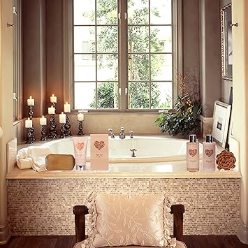 Spa Gift Basket - Bath and Body Set with Vanilla Fragrance by Lovestee - Includes Shower Gel, Lotion, Hand Salt, Eva Sponge a Puff