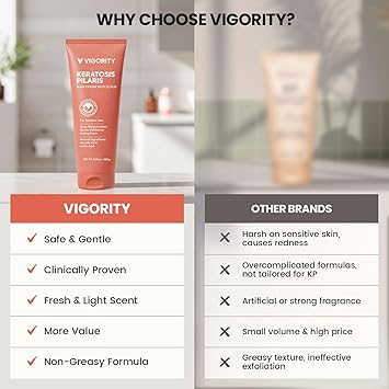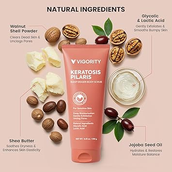 • Complete Your KP Routine: For maximum results, pair with the Vigority KP Bump Eraser Body Lotion. Use the scrub during your shower, then apply the lotion to clean, dry skin to lock in moisture and continue targeting KP bumps throughout the day.