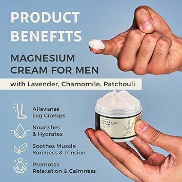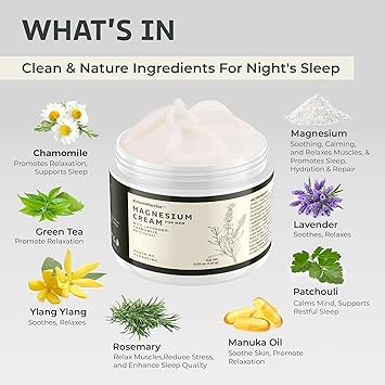 Magnesium Cream for Sleep & Leg Cramps: Soothing Lotion with Lavender, Chamomile, Patchouli Body - Calming Relaxation Muscle Soreness 4 fl.oz/120 ml