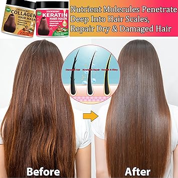 • Collagen Hair Mask for Dry & Damaged Hair: Collagen Provide sufficient nutrition for hair, Increase hair moisture and elasticity, avoid dryness and split ends, maintain hair elasticity, repair damaged hair, and makes hair flexibility and shiny