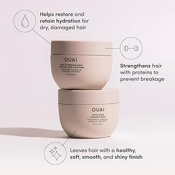 OUAI Anti Frizz Hair Treatment Bundle - Includes Crème + Fine to Medium Masque (2 Count, 6 Oz/ 8 Oz)