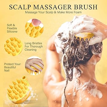 • 【SCALP MASSAGER】You will get a ginger (turmeric) scalp exfoliator scrub and a silicone scalp massager. Apply our scalp scrub through the part line and massage it in with a circular motion,then use scalp massager to massage your scalp,rinse with water and follow with conditioner. Enjoy a scalp treatment at home