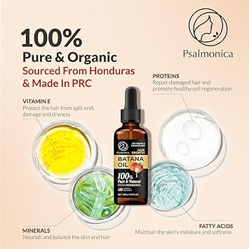 Batana Oil for Hair Growth: Raw Natural Oils Growth Damaged Dr Sebi from Honduras - Split Ends Loss Treatments Women(2.02fl oz)