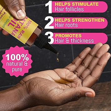 • ππ‘πŽπŒπŽπ“π„π’ π‡π„π€π‹π“π‡π˜ π‡π€πˆπ‘: Our 100% raw Batana Oil is rich in nourishing nutrients that promote overall hair health, leaving your strands looking vibrant and revitalized.