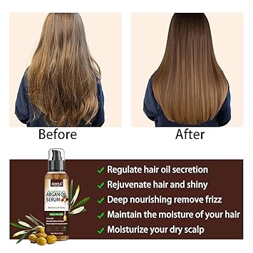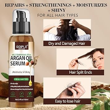 Argan Protein Hair Oil Serum Styling & Moisturizing - Anti Frizz Control Nourishes Repair for Dry Damaged Sclap Heat Protectant Shine Prevent Burns