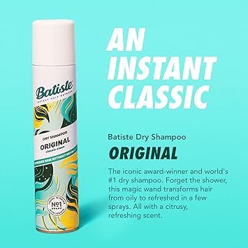Batiste Dry Shampoo, Original Fragrance Classic Clean, Refresh Hair and Absorb Oil Between Washes, Waterless Shampoo for Added Texture Body, 5.71 oz