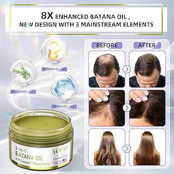Batana Oil For Hair Growth - 3in1 Serum, 4.2 oz, + Minoxidil Rosemary, Thinning & Scalp Care