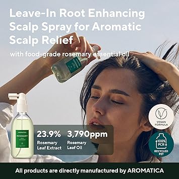 AROMATICA Rosemary Root Enhancer And Scalp Scrub Set - Water Spray Exfoliator For Dry Treatment, Refresh Your Hair with Oil Care, scalp treatment set