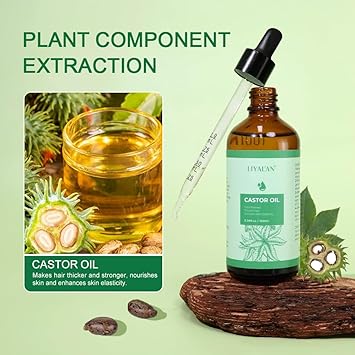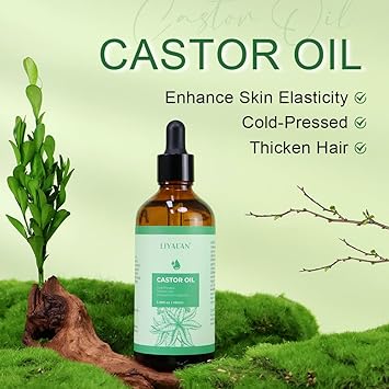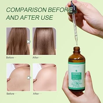 LIYALAN Pure Castor Oil Cold Pressed Unrefined Hair For Thicken Nourish and Scalp,Glass Bottle,For Face Body Massage,Carrier,Skin Care,3.38 fl oz