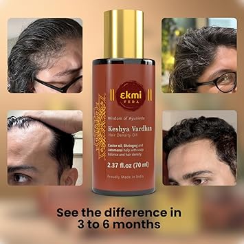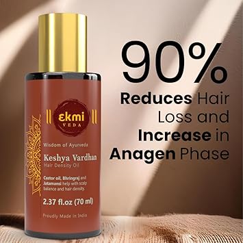 Ayurvedic Castor & Rosemary Oil For Hair Density With Bhringraj, Coconut, Amla, Argan, Brahmi. DHT Blocker. Loss Treatment Women Men, 2.37 Fl Oz