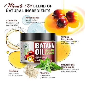 • 100% Pure Batana Oil - A natural, raw, and unrefined botanical extract that strengthens and promotes hair growth, perfect for preventing hair loss and repairing dry, frizzy, damaged, split, and thinning hair.