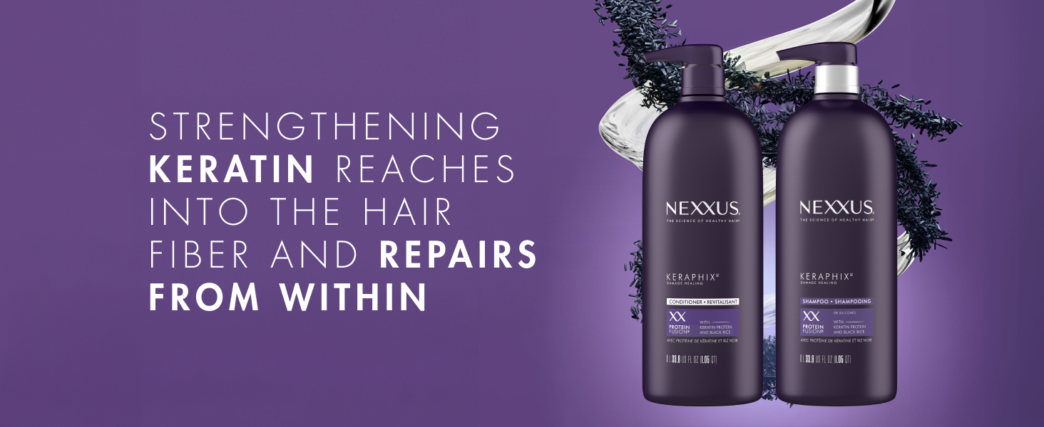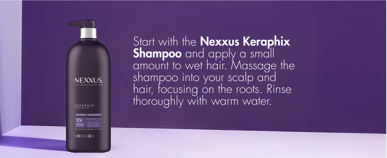Get the New York City salon experience at home with Nexxus Keraphix Shampoo for Damaged Hair, the first step to a powerful protein-infused keratin treatment that visibly heals signs of severe hair damage after just one use. Clinically proven to deliver internal repair to severely damaged hair from the very first use, Nexxus shampoo helps heal rough and brittle hair. The concentrated formula of this hair treatment for damaged hair features our highest level of proteins containing Keratin, Collagen, and Elastin. Nexxus combines black rice with Keratin Protein and other essential nutrients to create clinically proven healthy-looking hair. Salon-crafted with our exclusive PROTEINFUSION blend, it’s part of a unique 4-step process. When complete, signs of surface damage are healed, and hair is smooth, strong and healthy-looking. It’s safe and formulated for color and chemically treated hair. At Nexxus, we believe helping hair return to its optimal state means treating it with protein at high levels. Nexxus scientists set out to find inspiration from precious ingredients that could help seal severely damaged hair. The Nexxus Keraphix Healing System for Severely Damaged Hair heals visible signs of severe hair damage. Along with Nexxus keratin shampoo, try our deep conditioner for damaged hair, and add a gel treatment or revitalizing hair mask. We’ve created possibly our best hair mask: Keraphix Hair Masque for Damaged Hair—our favorite deep conditioning hair treatment. A leader in salon-quality hair products, Nexxus uses learnings from science and nature. We know that hair is made of almost 90% proteins, which is why we use advanced scientific methods to identify the protein needs of each hair type and create customized formulas with proteins to bring your hair back to life.