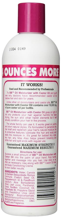 BB Oil Moisturizer, Hair Lotion With Castor and Aloe, Maximum Strength, 12-Ounce Bottles (Pack of 6)