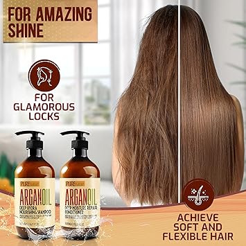 Argan Oil Shampoo and Conditioner Set - Sulfate Free Moroccan Care with Keratin For Curly, Straight, Dry Damaged Hair Moisturizing, Hydrating, Anti Frizz Salon Technology