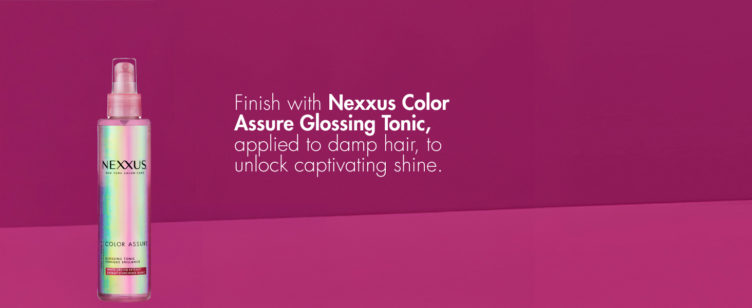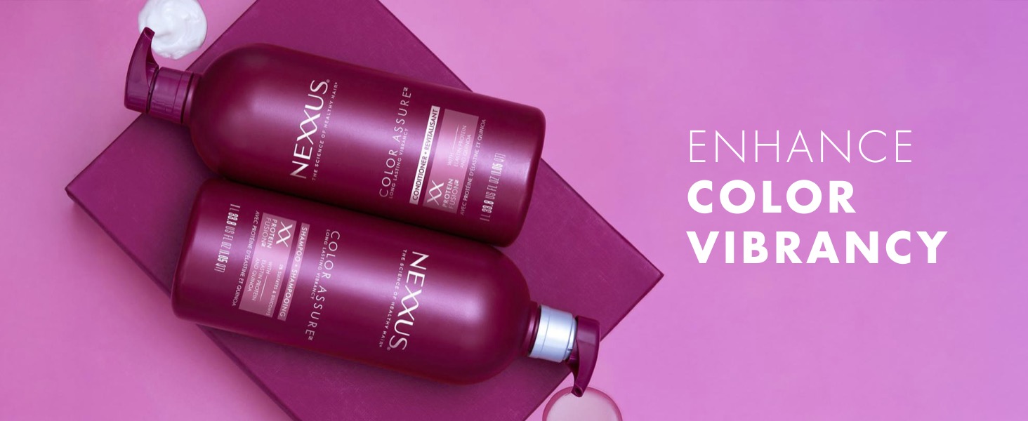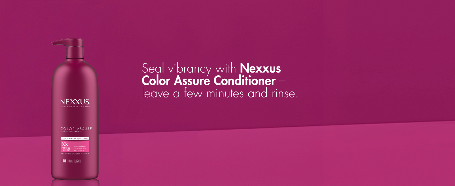 Born in salons and perfected by science, each Nexxus system is crafted with proteins extracted from nature’s most precious ingredients. Nexxus uses advanced scientific methods to identify the protein needs of hair, and we create highly effective custom formulas. Want to protect the brilliance and beauty of your freshly colored hair? Color treated hair can lose its vibrancy over time, but repeating the hair coloring process is not the answer. Instead, treat colored hair with a hair system designed to nourish hair and lock in color vibrancy. Nexxus Color Assure Shampoo and Conditioner are salon crafted for color treated hair, nourishing while helping to protect color vibrancy. These innovative formulas gently cleanse and reawaken color treated hair to give you vibrant hair that moves beautifully. Use this shampoo and conditioner together with the rest of the Nexxus Color Assure Vibrancy Retention Collection to protect your hair color for longer. Nexxus Color Assure Shampoo and Conditioner for Color Treated Hair Color Assure Enhance Color Vibrancy Collection is our premiere system for all your colored hair needs. Nexxus New York Salon recommends: Enriched with White Orchid, Nexxus Color Assure Shampoo and Conditioner for color treated hair replenish nutrients and help maintain color vibrancy. Step 1: Cleanse hair with Nexxus Color Assure Shampoo. Apply the color-safe shampoo to wet hair, experiencing the creamy lather before rinsing. Step 2: Seal vibrancy with Nexxus Color Assure Conditioner - leave a few minutes and rinse. Step 3: Finish with Nexxus Color Assure Glossing Tonic, applied to damp hair, to unlock captivating shine.