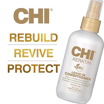 CHI Keratin Leave-In Conditioner is a unique reconstructing leave in treatment designed to infuse damaged hair with a powerful dose of natural keratin to rebuild hair's cuticle. Combining the natural reconstructing power of keratin with the essential nourishments of jojoba and argon oils, this highly sophisticated compound dramatically improves elasticity and prevents future breakage, while adding intense hydration that restores softness and shine.