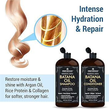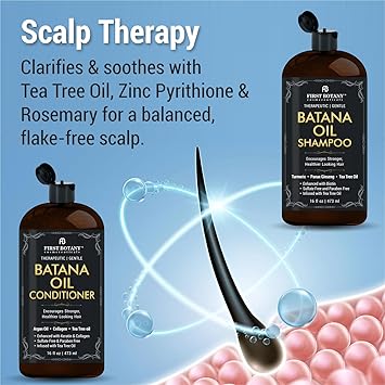 • Infused with Batana Oil and Botanical Extracts This shampoo and conditioner set is infused with Batana Oil, a nutrient-rich ingredient traditionally used for scalp and hair care. The formula also includes a blend of botanical extracts like Ginseng Root, Turmeric, and Hibiscus.