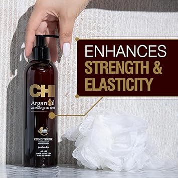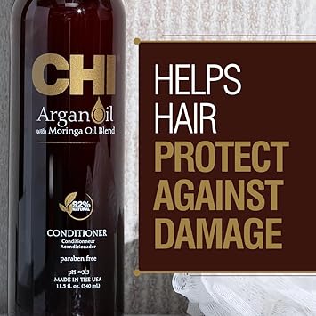 CHI Argan Oil Conditioner, Replenishes Hair Moisture, Enhances Strength & Helps Protect Against Damage, Sulfate, Paraben, Cruelty-Free, 11.5 Oz