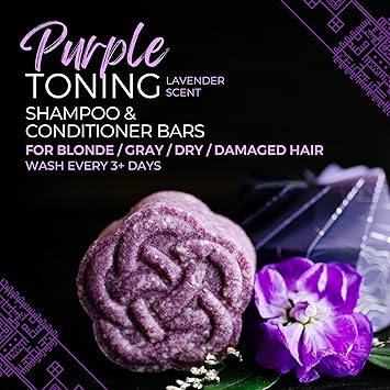 • Natural Purple Hue: Our clarifying shampoo bar is the best purple shampoo with a subtle purple hue that is naturally derived from sweet potato powder, offering a gentle and effective toning solution and is a perfect purple toner for blonde hair