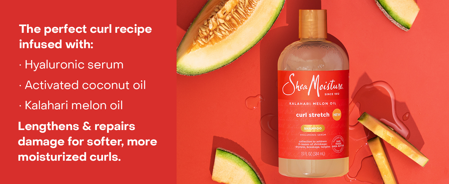 SheaMoisture Curl Stretch Shampoo Kalahari Melon Oil Infused with Hyaluronic Serum, Cleanses and Hydrates for Strong Soft Curls, Type 4 Hair 13 Fl Oz