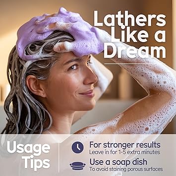 Arista Purple Shampoo Bar, Amla Fruit Powder, Toner & Castor Oil, Moisturizing Plastic Free Hair Soap, Sulfate Solid Puck for Grey