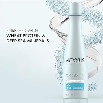 Born in salons and perfected by science, each Nexxus system is crafted with proteins extracted from nature’s most precious ingredients. Nexxus uses advanced scientific methods to identify the protein needs of hair, and we create highly effective custom formulas. It can be difficult to find a lightweight conditioner for flat hair that will give you the nourishment you need without weighing your hair down. This conditioner from the Nexxus Hydra-Light Weightless Moisture Collection is designed to reinvigorate your hair without adding extra weight. Enriched with Deep Sea Minerals and Concentrated Elastin Protein, this Nexxus Hydra-Light Conditioner, Dry Hair Conditioner, Moisturizing Conditioner, Silicone Free nourishes your hair and leaves it with beautiful movement. Nexxus recommends using this lightweight conditioner for fine to flat hair as a second step. How to Use? First, wash with Nexxus Hydra-Light Shampoo, Dry Hair Shampoo, Moisturizing Shampoo, Silicone Free. Work into a rich lather and rinse thoroughly. Second, give hair a hydrating boost without weighing it down by applying Nexxus Hydra-Light Conditioner, For Dry Hair, Moisturizing Conditioner, Silicone Free. Smooth into hair from root to tip, leave a few minutes, and then rinse. Lastly, follow with Nexxus Hydra-Light Leave-In Conditioning Foam for an extra moisture infusion. Alternatively, use Nexxus Hydra-Light Root Lift Mist for a thicker, fuller style. For more information on this Hydra-Light Collection and other information on our hydrating shampoos and conditioners, please visit nexxus.