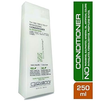 Awaken your scalp and hair follicles to a blend of cooling botanical oils that help eliminate dry flaking scalp and enhance shine. Enriched with botanical oils of cooling peppermint, conditioning rosemary and clarifying eucalyptus, Giovanni Invigorating Tea Tree Triple Treat Conditioner is the perfect daily hair treatment to strengthen, condition and clarify your hair. Its unique formula increases scalp circulation for a refreshed, renewed feel while alleviating dry and flaking scalp. With organic tea tree botanicals that invigorate your scalp, this conditioner is suitable for all hair types and helps to encourage natural shine and resilience.