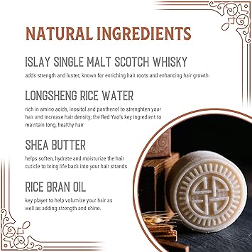 • Antioxidant-Rich Moisturizing Shampoo: The inclusion of antioxidant-rich whisky in our all natural shampoo bars strengthen and repair damaged hair, making it less prone to damage from environmental factors and free radicals, resulting in healthier and stronger hair