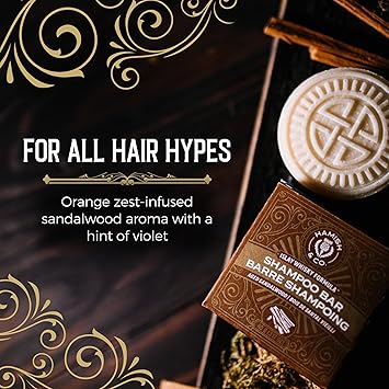 • Aged Sandalwood: Infused with orange zest, rose petals, and violet, this formulation offers a warm, earthy aroma reminiscent of a serene evening walk on the Scottish moors - a scented shampoo men are sure to love