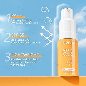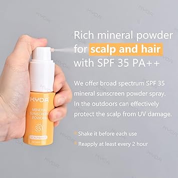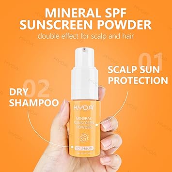 KYDA Mineral Dry Shampoo Powder, SPF 35 PA++ Scalp Sunscreen for and Hair, Lightweight Non-Greasy, All Hair Colors Types, #01, 0.71 Oz.