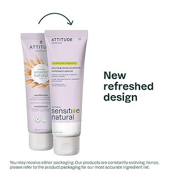 ATTITUDE Hair Conditioner for Sensitive Dry Scalp, For Thin Hair, Soothing Oat, Naturally Derived Ingredients, Dermatologically Tested, Vegan Detangler, Volume and Shine, 8 Fl Oz