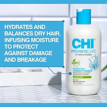 Using natural ingredients, CHI HydrateCare Hydrating Conditioner's gentle formula nourishes and hydrates dry hair for total repair and strength. Balances moisture and protects against damage and breakage. Restores strength, softness and gorgeous shine for healthier hair and easy maintence.