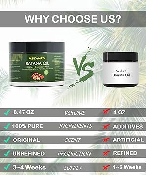 • 100% Pure & Unrefined - MUZAMOX batana oil organic for hair growth is free from chemicals or additives, ensuring its purity. 100 percent pure batana oil leaves your hair thicker and more vibrant. Our batana oil for hair growth is extracted using traditional methods, ensuring raw batana oil retains all its natural nutrients and benefits without any refinement.
