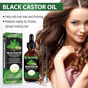 100% organic black castor oil for Body,Skin Care, Hair Growth, Eyebrow Care, Nourishes and Hydrates Hair.