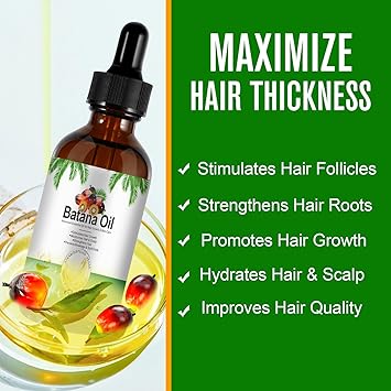 Batana Oil Advanced Essential Oil for Hair Growth & Skin Care Stimulates Hair Growth Moisturizes Hair & Scalp Strengthens Hair Prevents Breakage & Split Ends 100% PURE & NATURAL STEAM DISTILLED VEGAN Premium Therapeutic Grade 60ml e 2.02 fl.oz Batana oil is an ancient beauty secret first discovered in Honduras by the indigenous Miskito people, also called the 'Tawira tribe' which translates to “People of beautiful hair.” Their secret to beautiful hair - Batana oil. They credit their strong, long and shiny hair to the “Miracle oil,” Batana. Rich in Essential Fatty Acids, Antioxidants, Vitamin E, Oleic Acid, Linoleic Acid and Oleanolic Acid. No other product offers all the same nutrients and benefits in one single oil as Batana does. Sourced from the exotic palm trees of Central America our premium Batana oil is nature's gift, renowned for its exceptional ability to stimulate hair growth, combat hair loss, and restore hair vitality. Packed with essential nutrients, antioxidants, and nourishing properties, it penetrates deeply into the hair follicles, promoting natural hair growth and fortifying from root to tip. Witness the transformation as this elixir rejuvenates dormant follicles, creating stronger, thicker, and healthier strands. With a deep commitment to nature, our Batana oil is sustainably sourced, preserving the purity of this age-old beauty secret. No Additives, No Chemicals, just the pure, natural goodness of Batana oil. Ingredients Batana Oil Directions For Hair: Massage it directly into your scalp Take about 5 drops of Batana oil and massage evenly into your scalp after bath or shower. Mix with a carrier oil (like jojoba oil or coconut oil). Rinsing out the