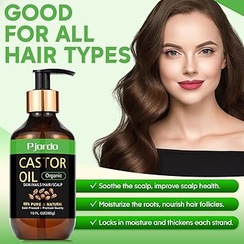 Cold Pressed Unrefined Castor Oil - 100% Pure, Hexane-Free for Hair Growth, Thicker Eyelashes & Eyebrows, Skin Moisturizer, 20 fl. oz