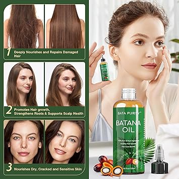 - Natural Batana Oil Formula: The key ingredient, organic Batana Oil sourced from Honduras, is rich in antioxidants and essential fatty acids. It deeply nourishes the hair and scalp, repairing dry and damaged strands, while restoring hair's natural shine, elasticity, and overall health