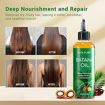 - Deep Hydration and Moisture: This organic Batana Oil quickly penetrates the hair, providing long-lasting moisture and hydration. It restores dry, frizzy hair, leaving it softer, smoother, and healthier overall