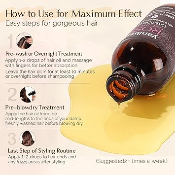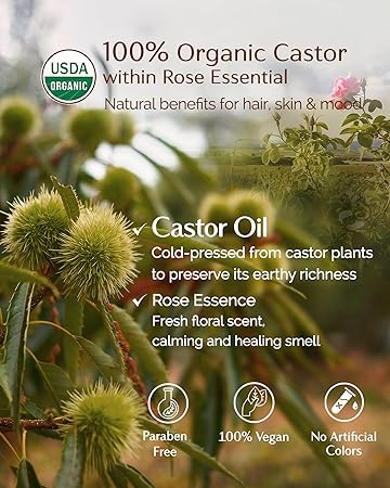 YANIBEST 100% Natural USDA Certified Organic Cold Pressed Unrefined Rose essential Oil for Hair, Face Castor Oil,Scalp & Hair Strengthening All Types