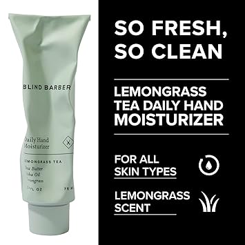 Blind Barber Lemongrass Tea Hand Moisturizer - Hydrating & Soothing Lotion with Shea Butter, Avocado Jojoba for Dry, Cracked Skin Men’s Care (2.6oz / 75ml)