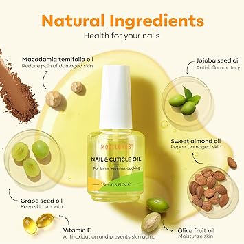 modelones Cuticle Oil for Nails, Natural Nail Growth and Strength Damaged Nails Vitamin E Revitalizing Essential Oils Care 15ml
